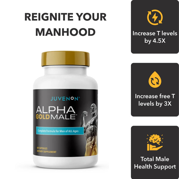 Alpha Gold Male™ by Juvenon is a powerful supplement for men seeking to feel strong, focused, and energetic again. It is designed to increase testosterone levels in the body, which helps restore muscle tone, confidence, and energy that naturally decline with age. Within weeks, users can experience stronger muscles, better stamina, and renewed enthusiasm. The carefully selected ingredients support metabolism, fat burning, and mood enhancement, helping you perform at your best physically and mentally. Whether it’s a demanding workout or a busy workday, Alpha Gold Male™ keeps you performing at your peak.